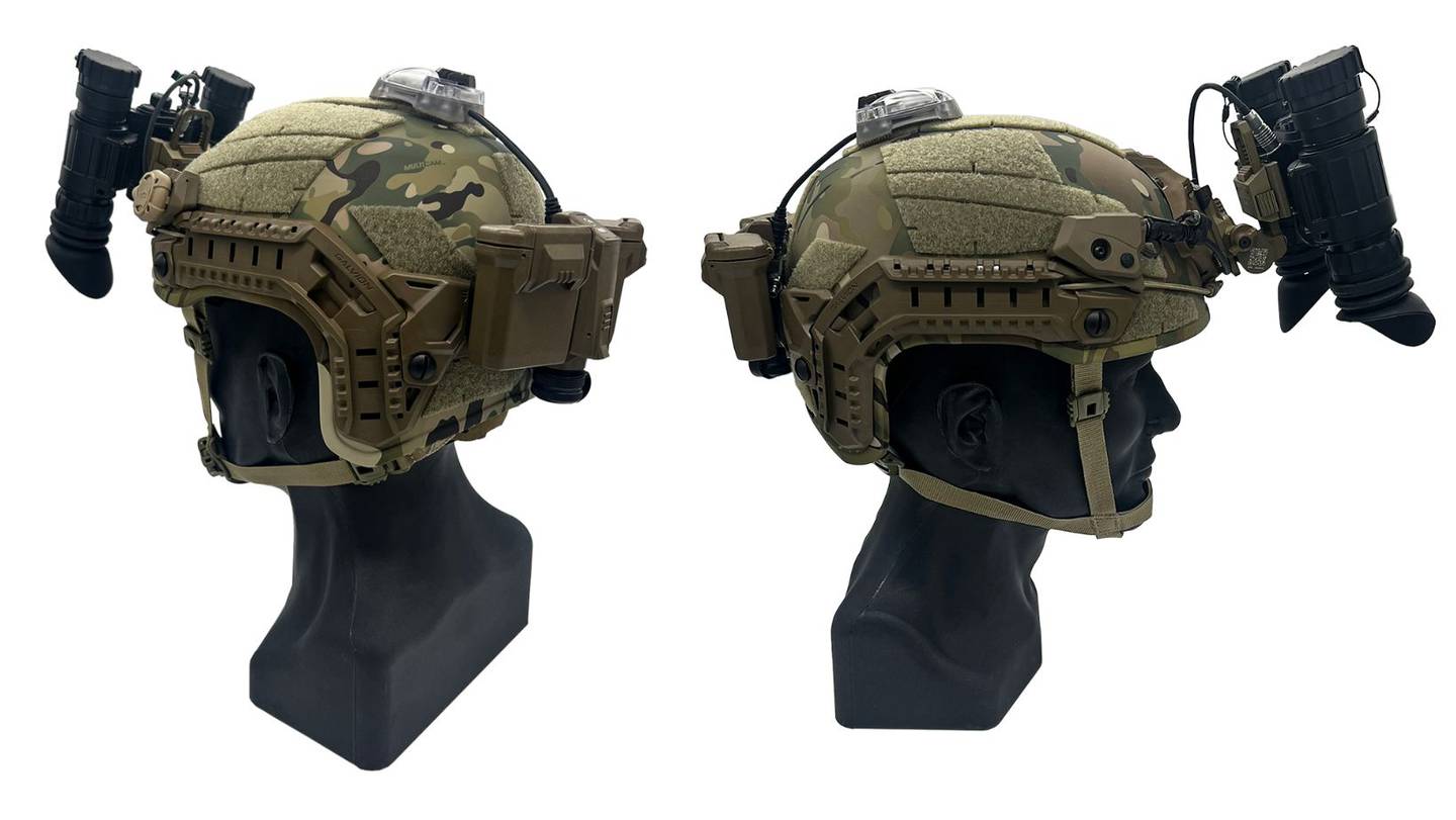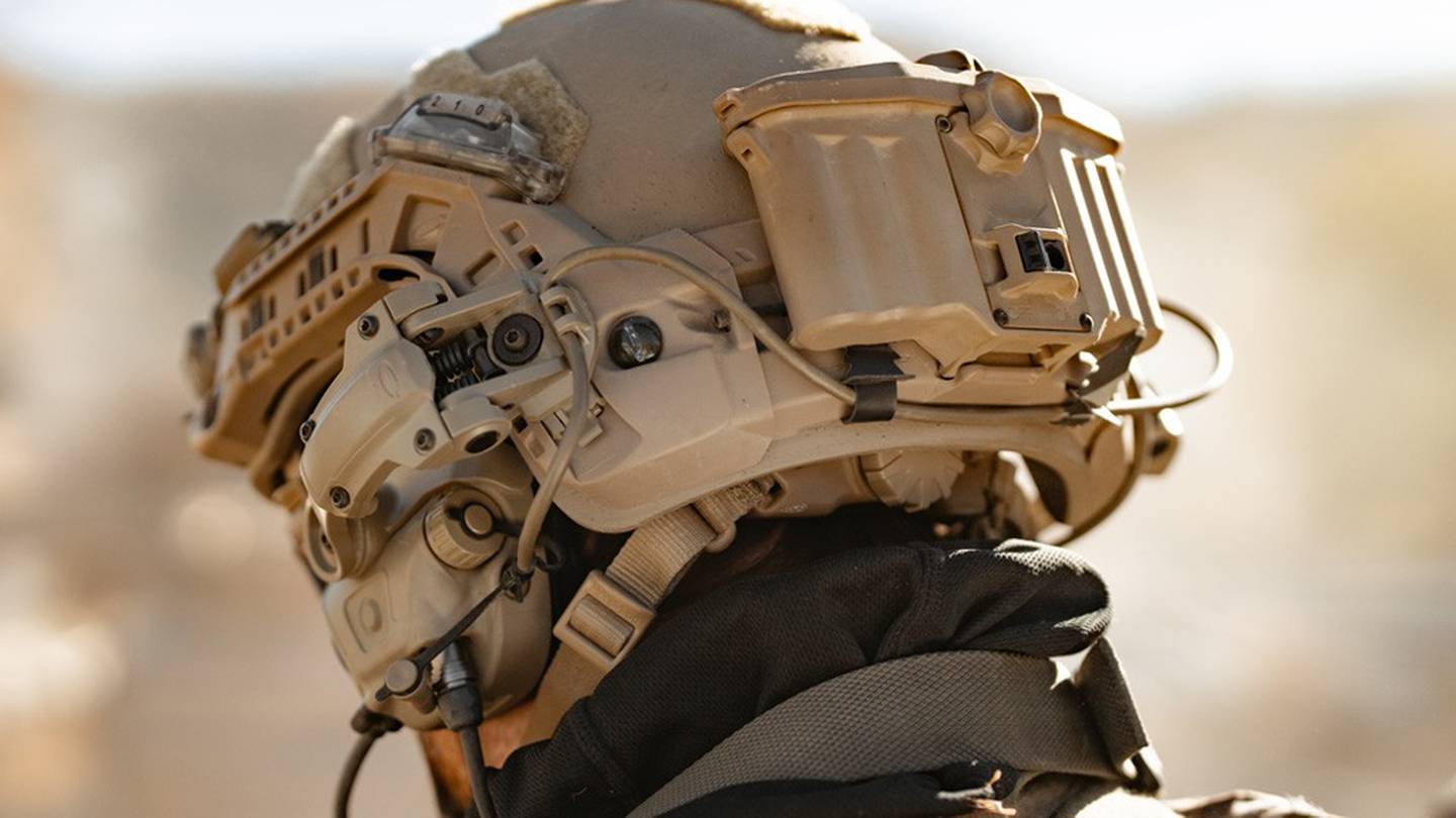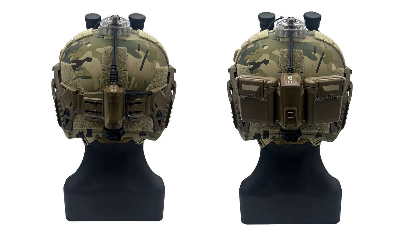 It’s designed to power visual augmentation systems and send information digitally through its wraparound power/data rail and helmet-mounted battery pack. The system is scalable, allowing it to power radio communications equipment, vision devices, lights and other electronics.