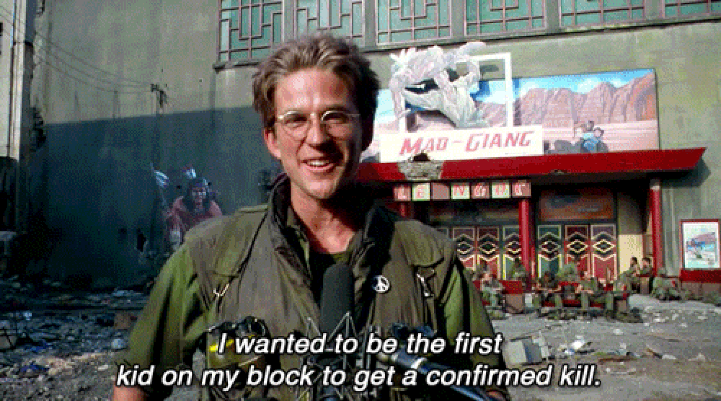 “Most of ’em got nothing. They’re poor. They’re the unwanted. Yet they’re fighting for our society and our freedom. It’s weird, isn’t it? They’re the bottom of the barrel, and they know it. Maybe that’s why they call themselves grunts, ’cause a grunt can take it, can take anything. They’re the best I’ve ever seen.” — Pfc. Chris Taylor (Charlie Sheen), “Platoon”