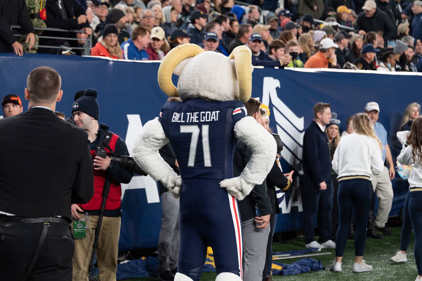 The Naval Academy class of 1971, in particular, loves Bill the Goat. In fact, its members are the goat’s biggest benefactor. It’s the reason why Bill sports the number 71 on his jersey.