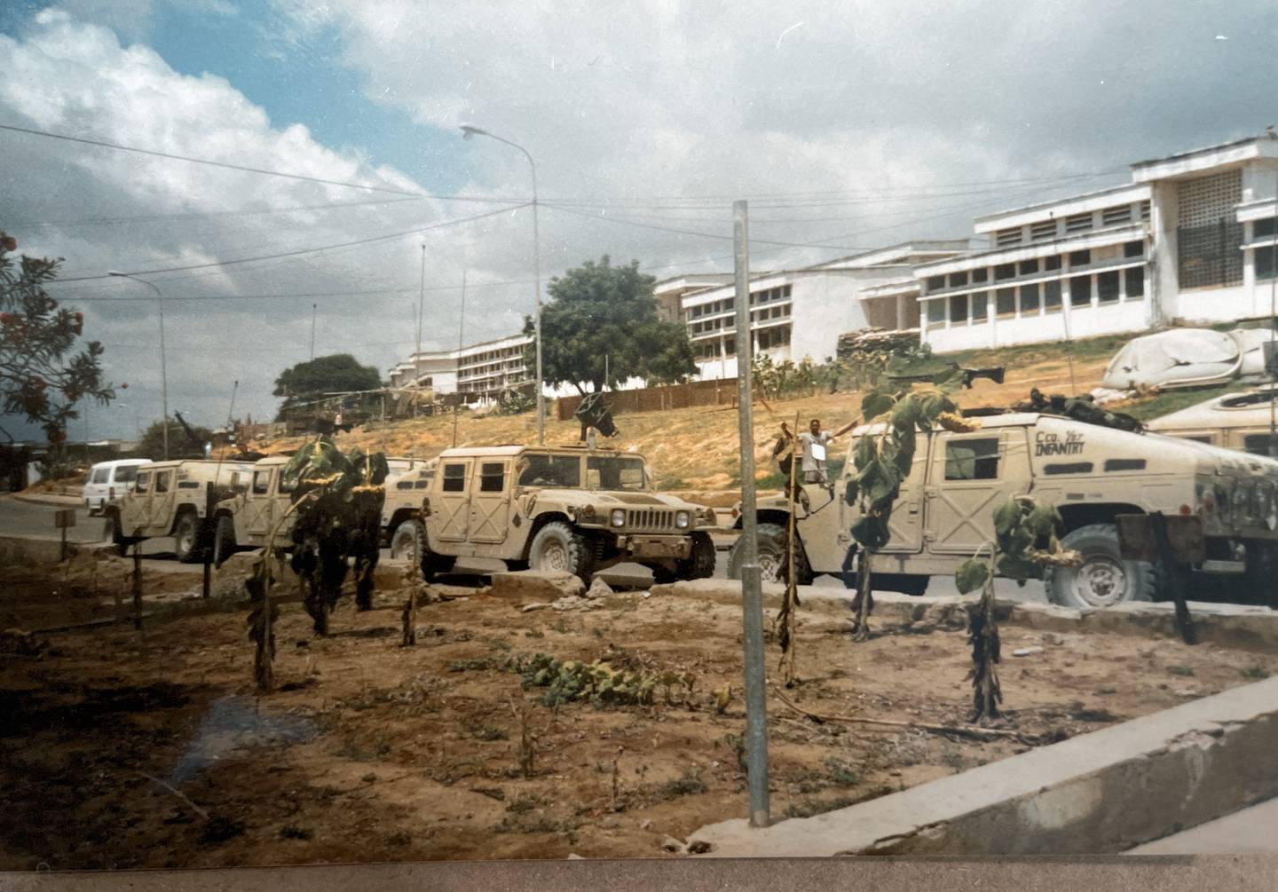 Houston drove his vehicle through eerily empty, quiet streets. The silence weighed heavily as he knew a fight was coming. In the distance, he could see U.S. helicopters firing into the city and enemy tracers slicing up through the sky.