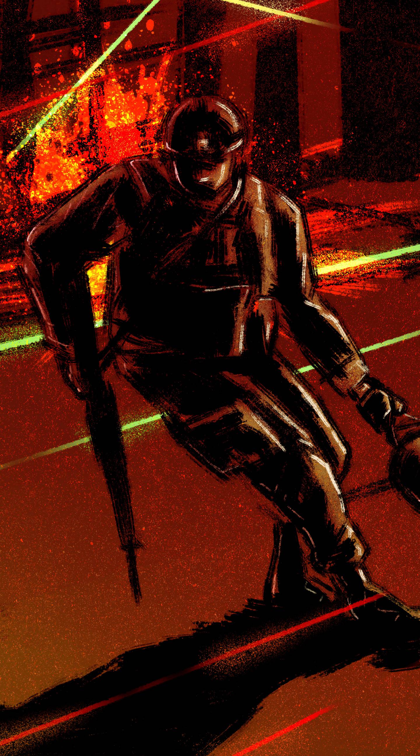 A kaleidoscopic hail of tracer fire swept across the alley — green, red, orange — casting a neon glow on the darkened streets of Mogadishu.