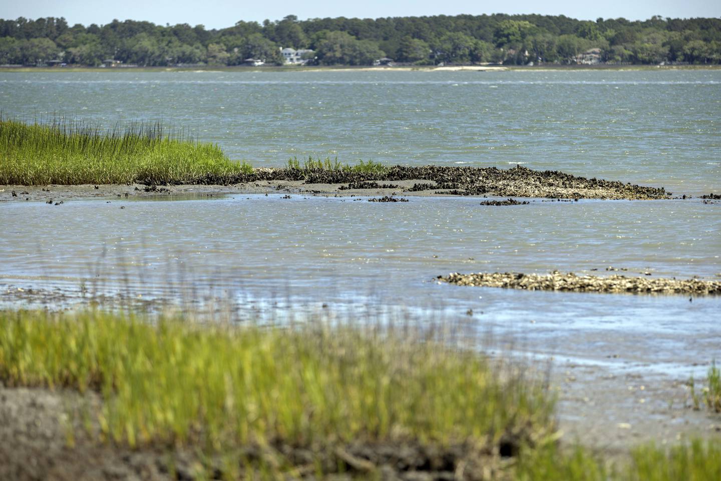 Natural occurring oyster reefs and salt marshes surrounding much of the Marine Corps Recruiting Depot, Wednesday, May 11, 2022, in Parris Island, S.C. (Stephen B. Morton/AP)