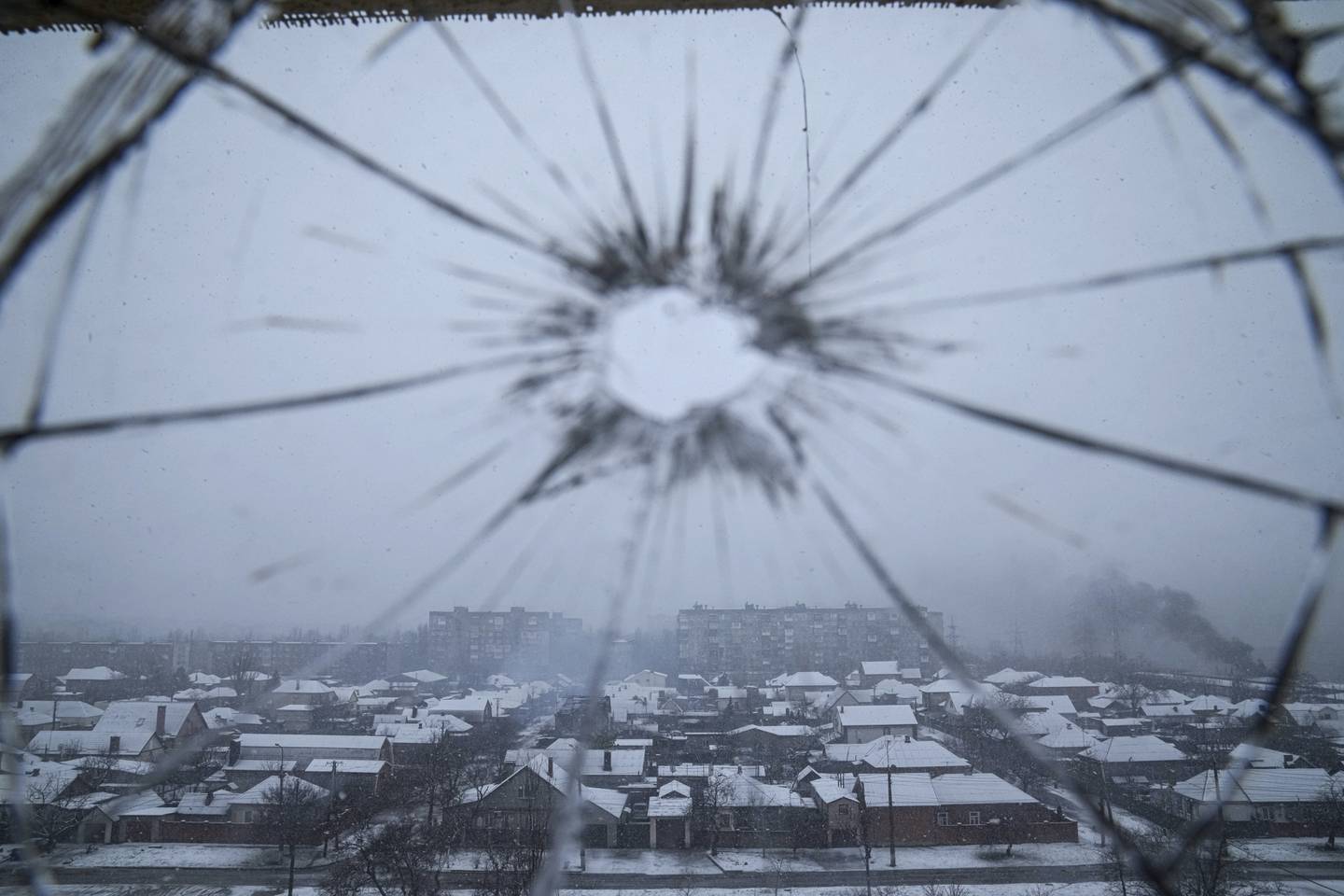 Glass on a hospital window is shattered by shelling in Mariupol, Ukraine, Thursday, March 3, 2022. (Evgeniy Maloletka/AP)