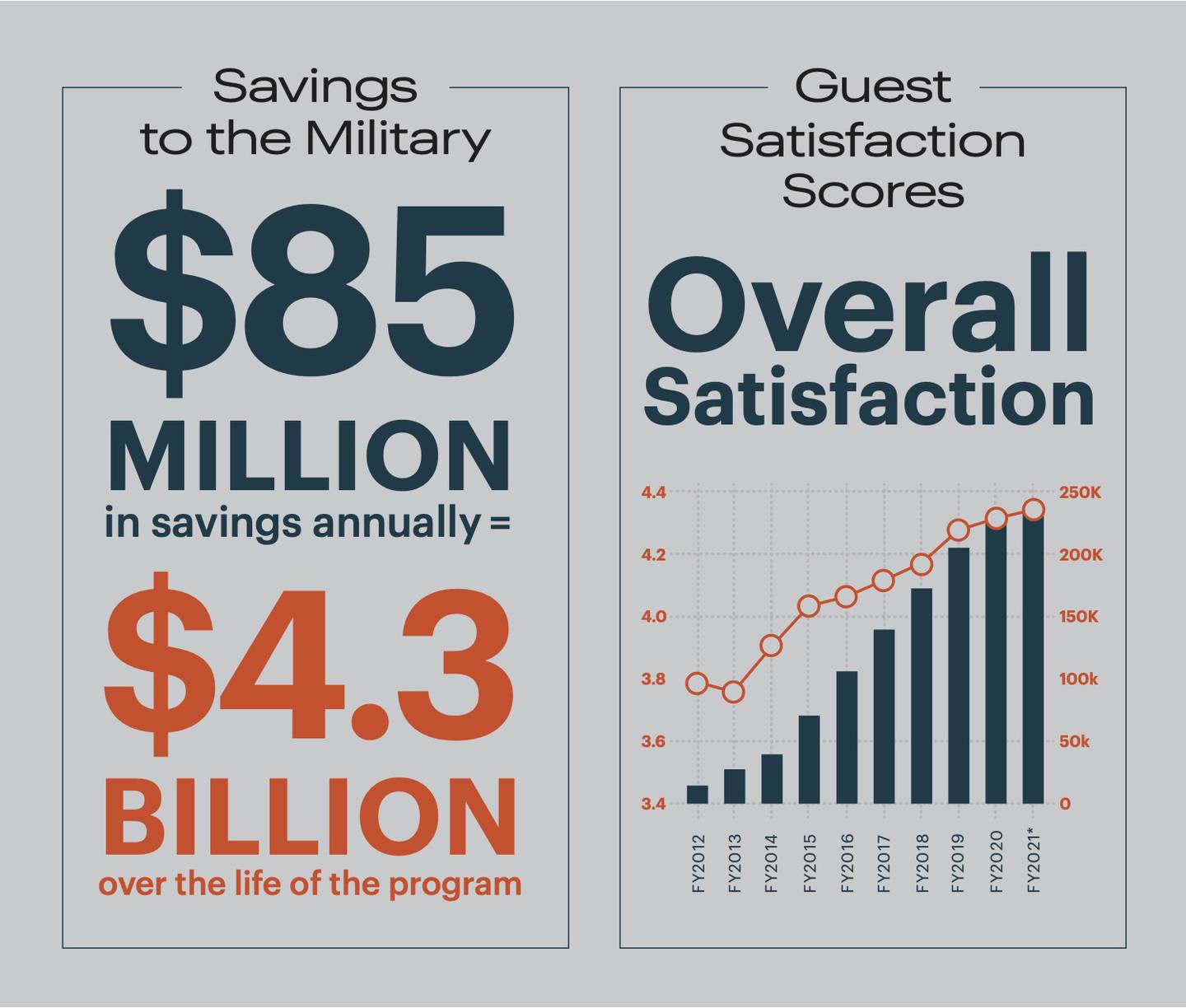 That commitment to our guests is also reflected in our properties. As a result of the Privatization of Army Lodging (PAL) program, we’ve been able to build safer, more comfortable and more modern accommodations inside Army installations. Under PAL, $43 of every $100 spent on our hotels is reinvested into the program, with more than $5 billion to be reinvested over the next 50 years. Here are a few of the ways we’ve improved Army lodging facilities over the years: